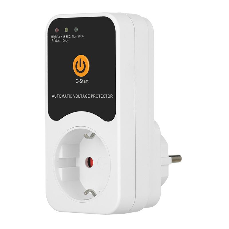 Prise Protecteur de Tension Automatique Protection de Sécurité Surtension/Sous-tension AC 220V Réglable 16A Prise Protecteur de Tension Fiche UE