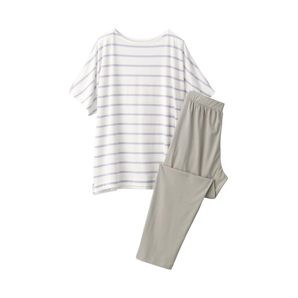 MUJI Smooth and Cool Loungewear Set in Smoky Purple Size XS Women's Short-Sleeve (FD1LBA5S) Stripes,