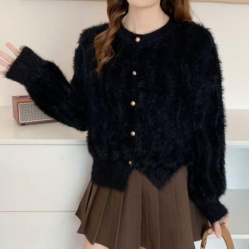 Automne Hiver Doux Cireux Vison Pull Manteau Femmes Ample et Doux Cardigan Tricoté Haut