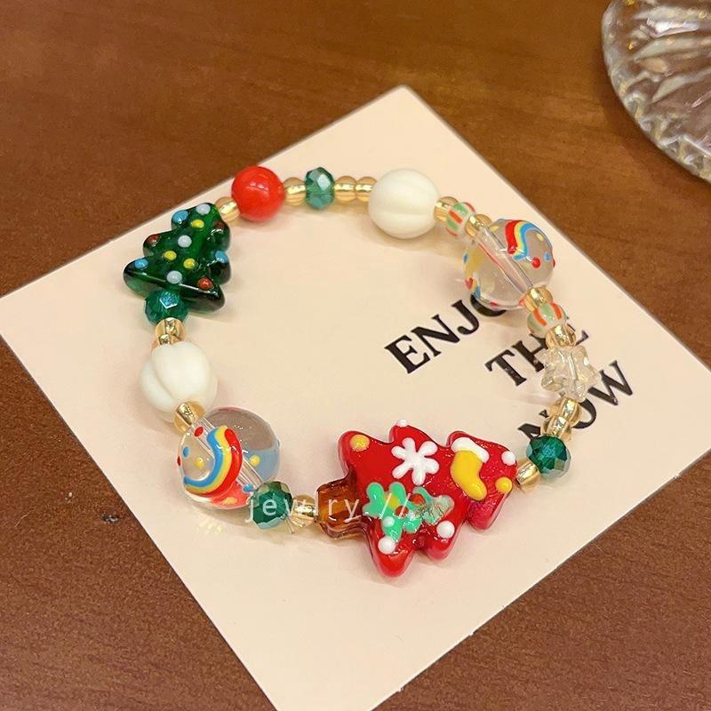 Christmas Series Woven Bracelet with Gingerbread Man Pendant Practical Holiday Home Decor Jewelry Christmas Tree