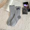 Grey College-style Striped Fabric Label Women's Mid-calf Socks Autumn and Winter Cotton Socks Trendy and Individualistic Long Calf Socks