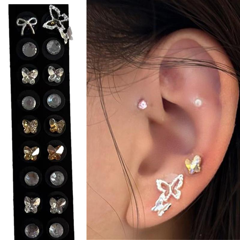 20 Patches Butterfly Flower Shape Crystal Ear Seed Acupuncture Auricular Disposable Ear Stickers Massage Therapy Needle Patch