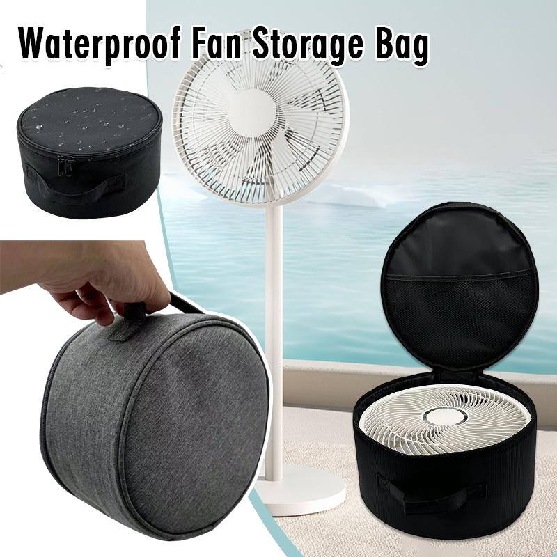 Round Telescopic Fan Storage Bag Large Capacity Outdoor Fan Hand Bag Folding Waterproof Fan Case with Double Zipper Mesh Pocket
