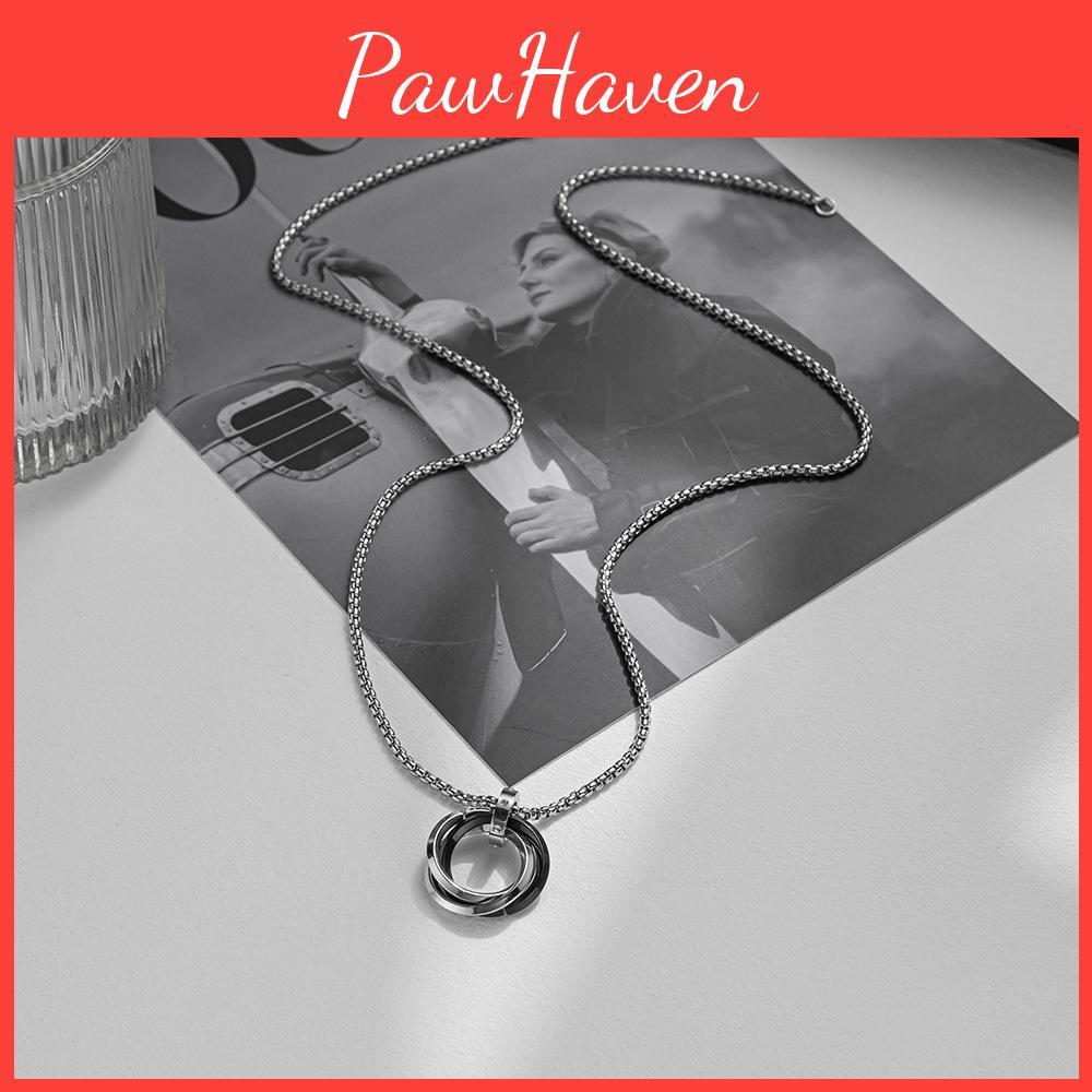 This titanium steel necklace features interconnected geometric circle pendants, delivering a minimalist, modern look. Made of durable titanium steel, it measures 51-80cm, ensuring comfortable wear for daily use. Ideal for casual or contemporary fashion, it enhances any outfit and suits both men and women. Wipe clean with a damp cloth to maintain its finish.