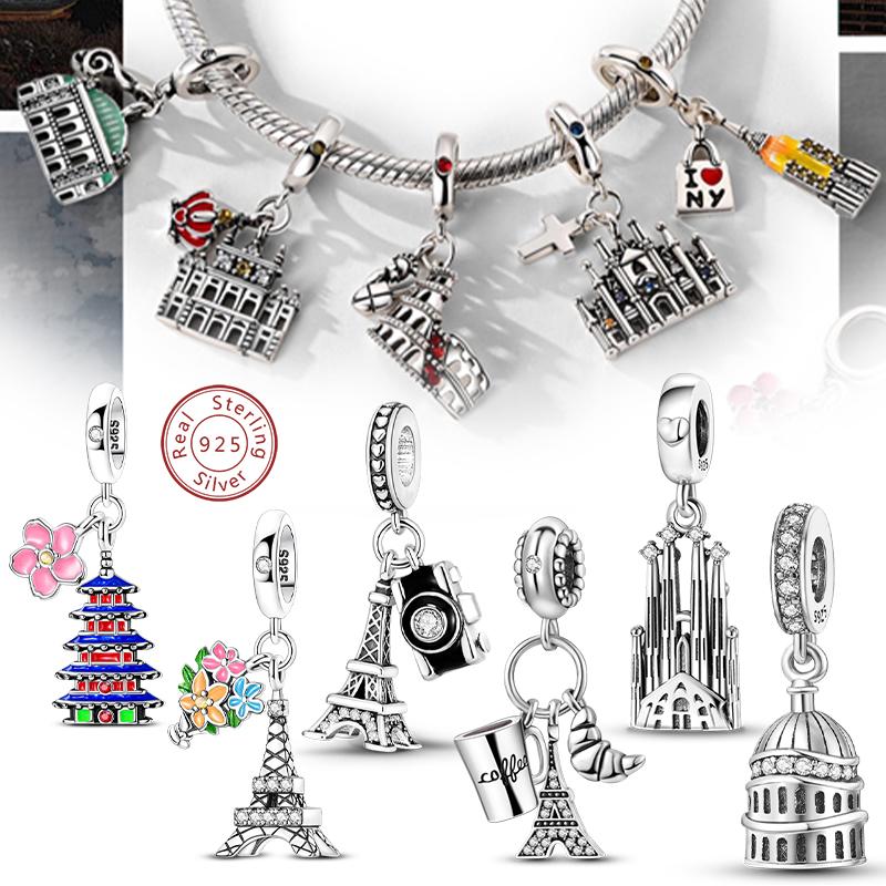 Original Copper Charms Beads Paris Eiffel Castle Church Pendant Fit Bracelet Bangle Pendant Women Diy Jewelry Gift