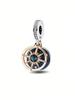 Copper Hollow Out Double Heart Starry Energy Stone Pendant Charm Ball Suitable For Bracelets Diy Women'S Jewelry