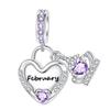 Sparkling Birthstone Charms Copper Heart Key Birthday Pendant Fit Original Necklace Bracelet Women Jewelry Diy Gift