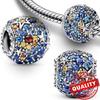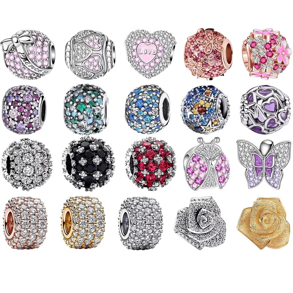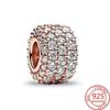 Colorful Full Diamond Charms Copper Heart Blooming Rose Round Beads Pendant Fit Original Bracelets Necklace Jewelry