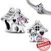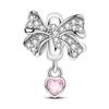 Lovely Copper Sparkling Pink Bow Charm Copper Diamond Heart Charm Fit Original Bracelet & Necklace Diy Jewelry