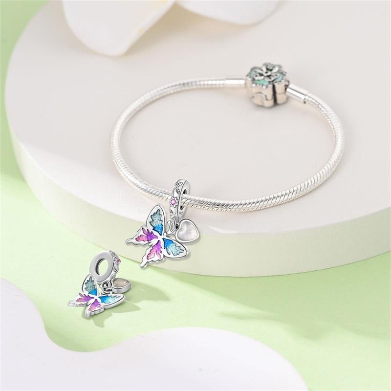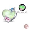 New 100% Copper Nightglow Butterfly Heart-Shaped Gem Charms Bead Fit Qikaola Original Bracelet Diy Birthday Jewelry