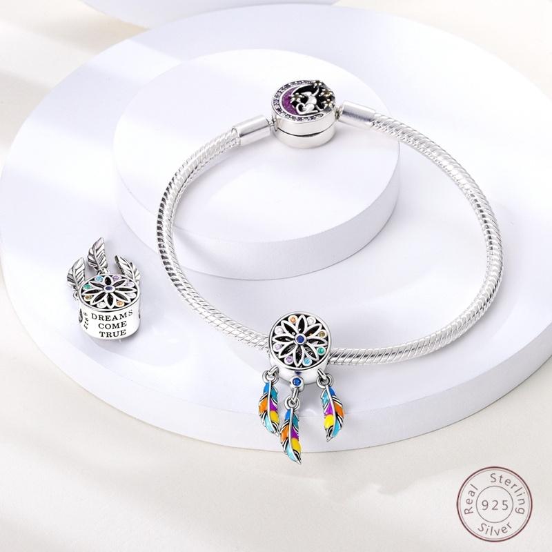Copper Beaded Pendant Sparkling Zirconia Dream Catcher Original 3Mm Bracelet Women Fine Jewelry