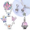 Charms Copper Pink Glass Butterfly Tulip Flower Pendants Fit Charms Plata Original Bracelet Beads Women Jewellery Making