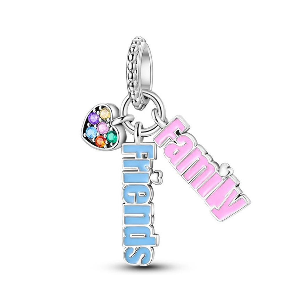 Charms Plata Family And Friends Heart-Shaped Pendantss Fit Original Bracelets Charms For Women Jewelry Diy Making Gifts
