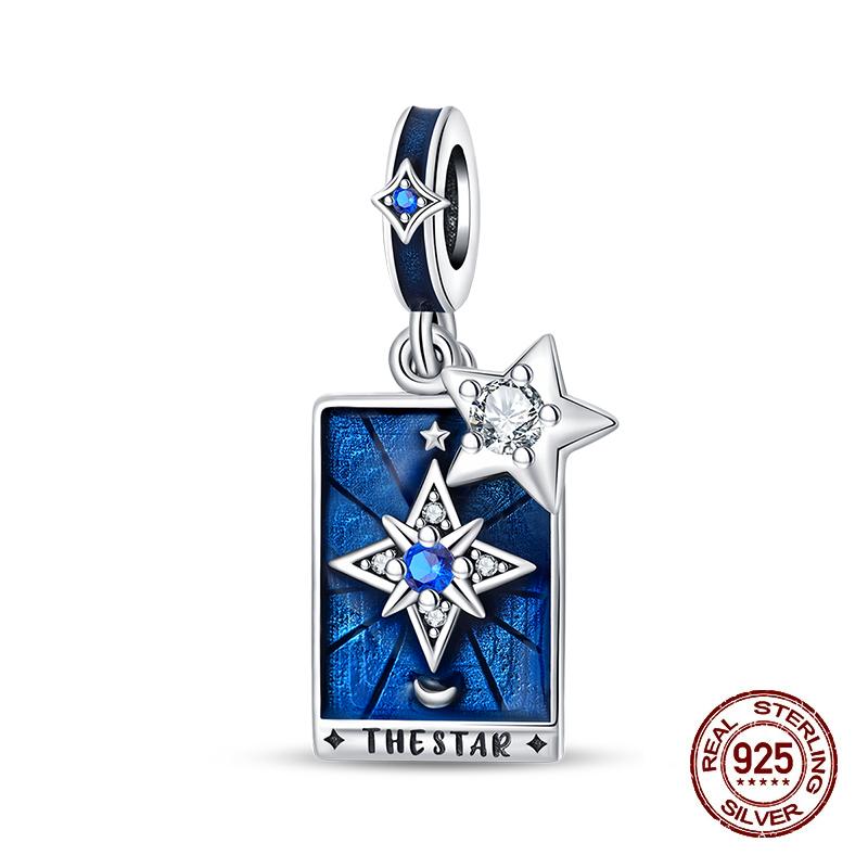 Charms Copper Blue Star Tarot Card Bead Charms Fit Original Charm Bracelet Necklace Beads Diy Jewerlry Accessories