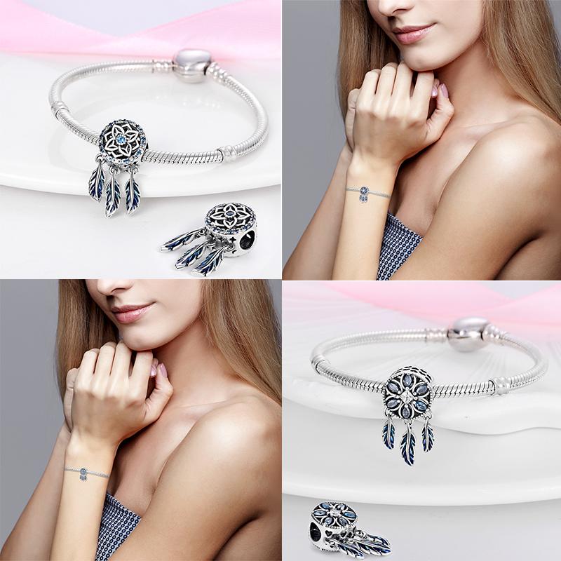 Fashion Copper Feather Colorful Luminous Dreamcatcher Charms Bead Fit Original Bracelets Exquisite Diy Jewelry Gift
