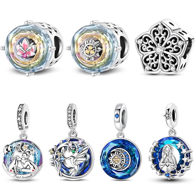 New Copper Pigeon Lotus Sun Moon Stars Shining Glass Charms Beads Fit Original Bracelets Fine Diy Jewelry Gifts