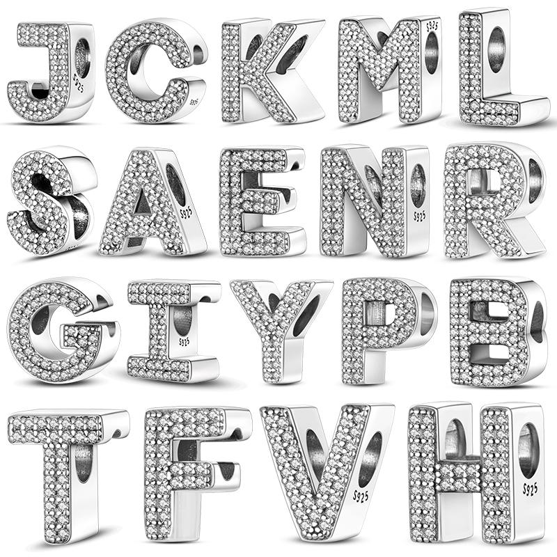 Charms Originale Zircon English Letters Series Beads Fits Bracelets Necklace Women Charm Copper Luxury Diy Jewelry Gifts