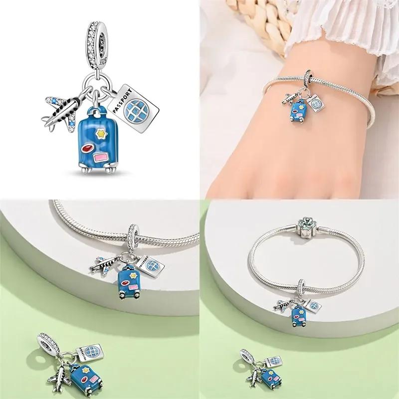 Anniversary Luggage Airplane Passport Three-Piece Set Copper Charms Fit Original Bracelet Jewelry Making For Women Gift