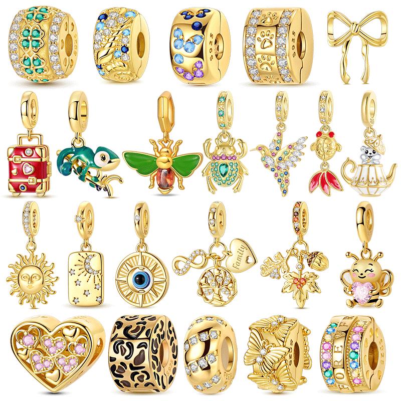 Gold Series Diy Charms Bead Original Copper Inlaid Zirconium Sun Insect Pendants Fit Bracelet Jewelry Gift Marking