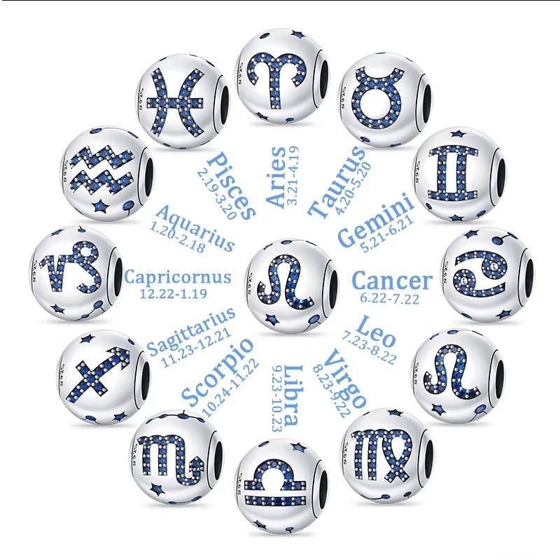 Original Charms Copper Twelve Constellations Charms Beads Fits Womens 3Mm Original Bracelets Necklace Diy Fine Jewelry Gifts