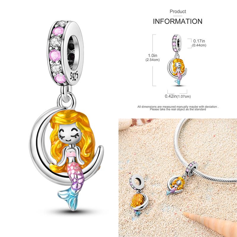 Copper Charms Clock Ocean Sea Turtle Mermaid Heart Shape Beads Fit Original Pan Pendant Bracelet Diy Woman Jewelry