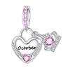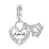 Sparkling Birthstone Charms Copper Heart Key Birthday Pendant Fit Original Necklace Bracelet Women Jewelry Diy Gift