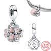 Charms Heart Beads Pink Dangle Charm Flower Pendant Diy Jewelry Fit Original Copper Bracelet Necklace Clip