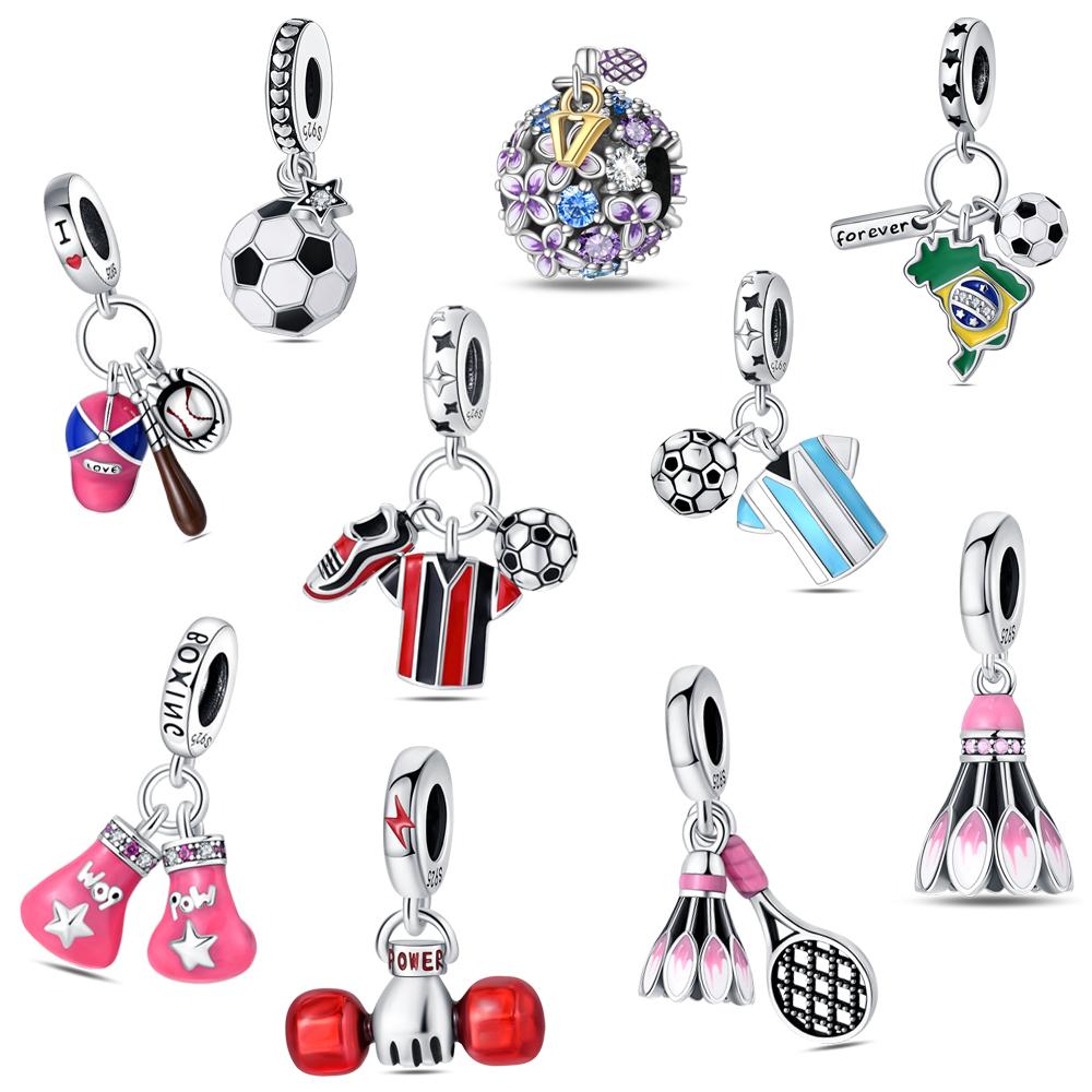 Popular Copper Sports Football, Badminton & Baseball Dangle Charm Fits Brand Bracelet For Kids Jewelry Gift