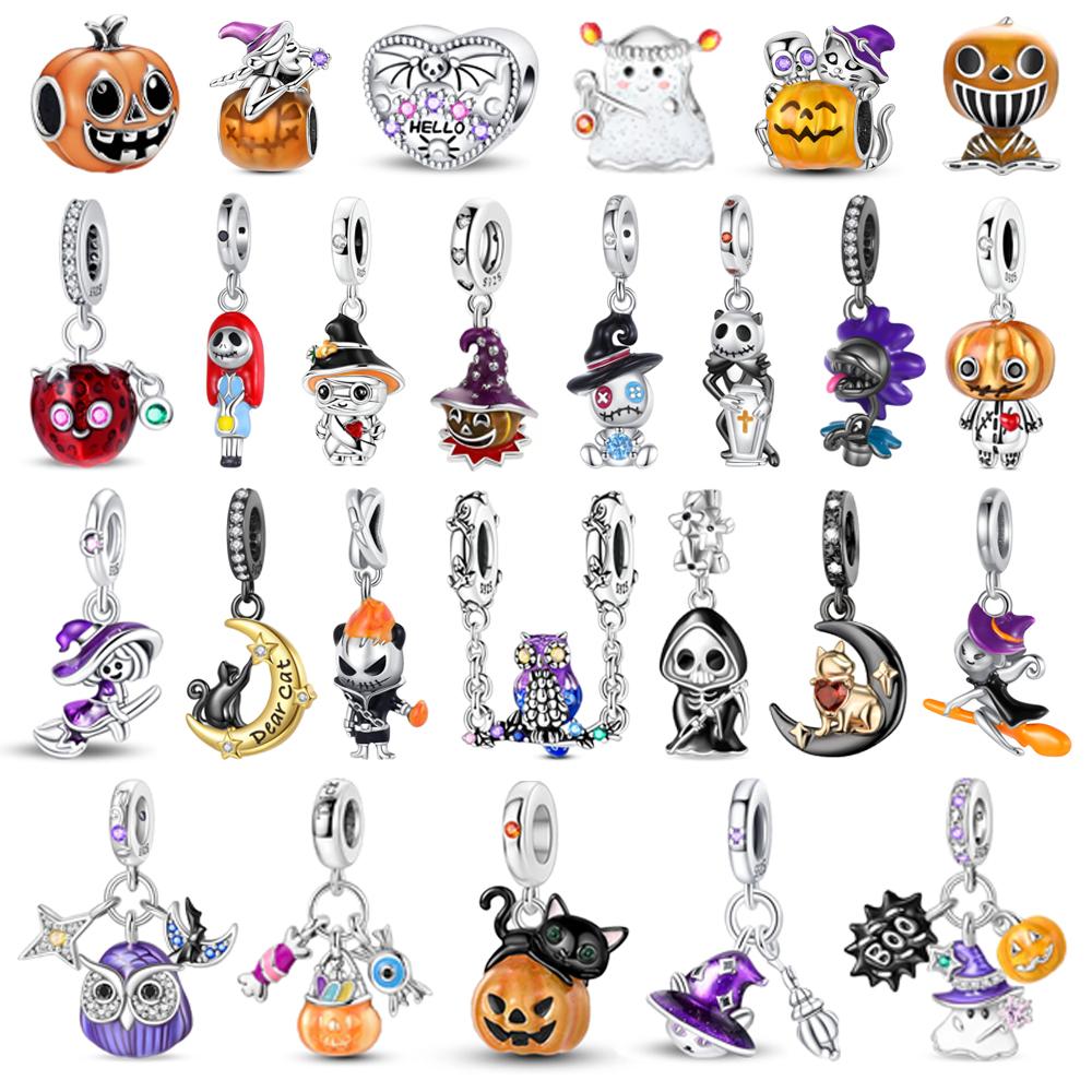 Copper Cute Ghost Beads & Cat Pumpkin Head Dangle Charm Fits Bracelet Halloween Pendant Accessories Gifts