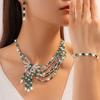 Diamond Bow Water Drop Pendant Earrings Necklace Set Light Luxury Premium Clavicle Chain Retro Temperament Necklace Women