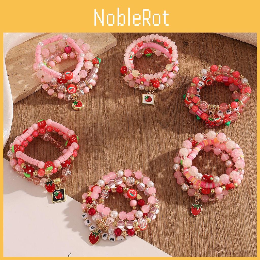 Strawberry Pendant Beaded Bracelet Set With Crystal Glass For Womens Fashion Accessories
