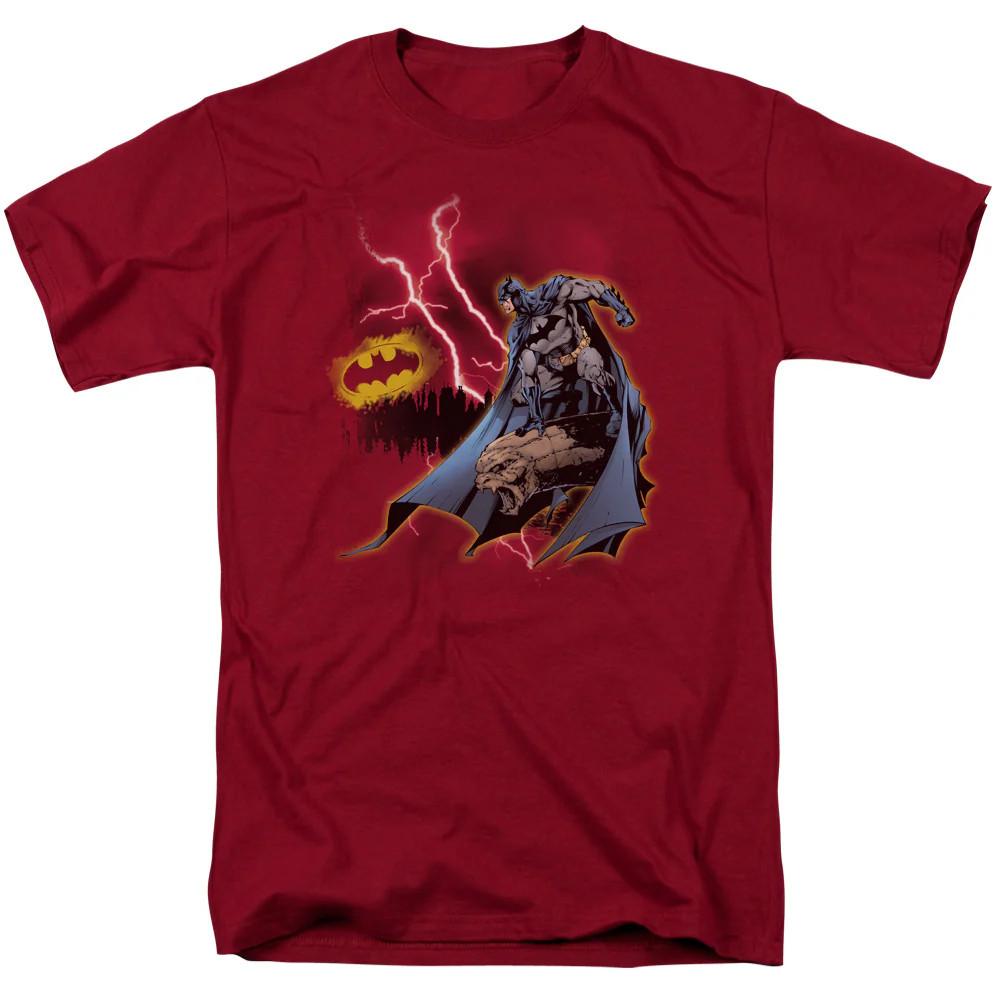 Batman Lightning Strikes Mens T Shirt Cardinal
