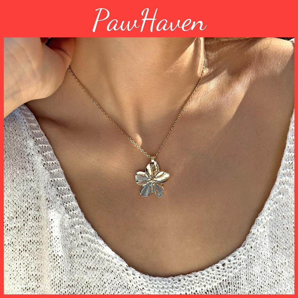 Floral Metal Pendant Necklace With Alloy Charm For Women Fashion Jewelry Set