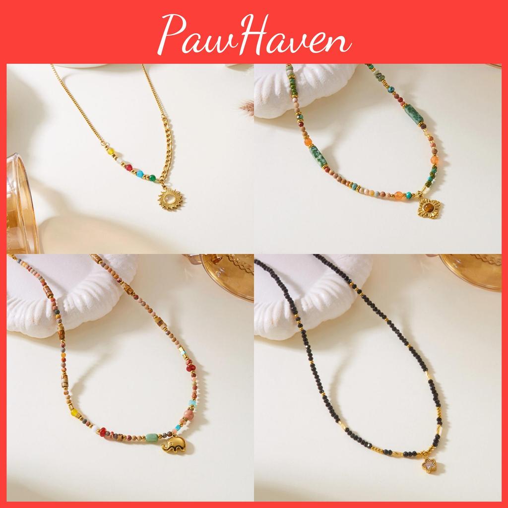 Ce bijou en acier inoxydable d'été présente un pendentif tournesol complété par des perles turquoise, créant un look frais et élégant.. Fabriqué en acier inoxydable durable avec un processus de placage sous vide, Le design multicouche rehausse son attrait mode.. Idéal pour les sorties décontractées ou les vacances, il ajoute une touche de beauté naturelle à n'importe quelle tenue.. Nettoyer avec un chiffon doux pour préserver son éclat.