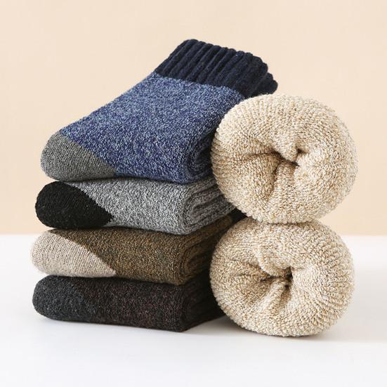 Yousheng Men Thickened Wool Socks Color-Block Winter Ribbed Terry Socks Breathable Warm Casual Crew Socks for Daily Errands Workout Outdoor Sports