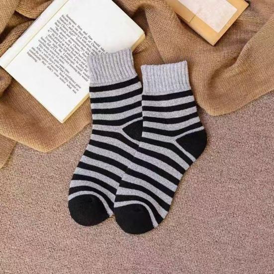 Yousheng Men Striped Crew Socks Thickened Warm Ribbed Terry Socks Winter Thermal Casual Socks for Sports Daily Errands Work Wear