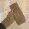 Gants d'hiver doux à demi-doigts pour femmes, chauds, luxueux, solides, blancs, en peluche, tricotés, sans doigts, mitaines pour poignet, écriture