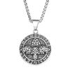 European and American Vikings Golden Wolf Head Triangular Rune Pendant Male Tide Personality Versatile Stainless Steel Necklace Jewelry