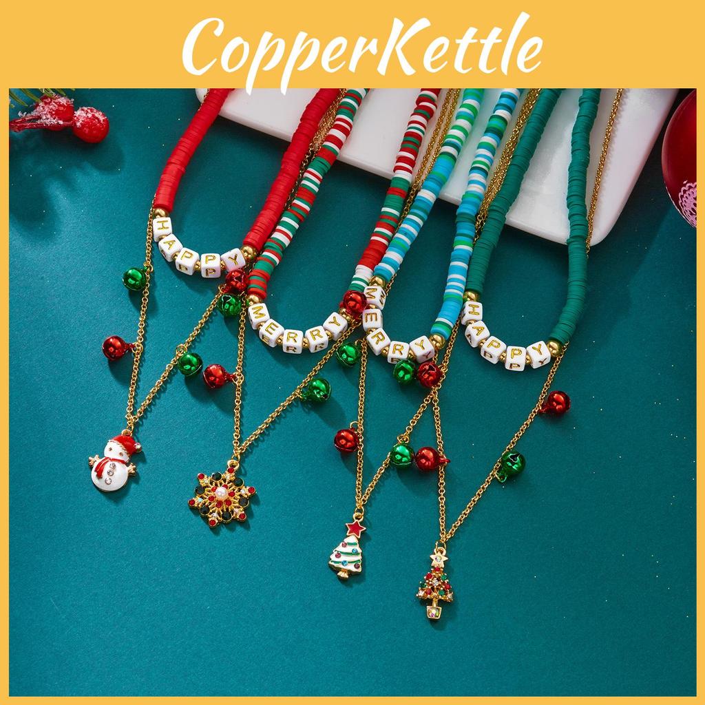 Winter Holiday Santa Bell Pendant Necklace With Snowflake Embellishments For Festive Outfits