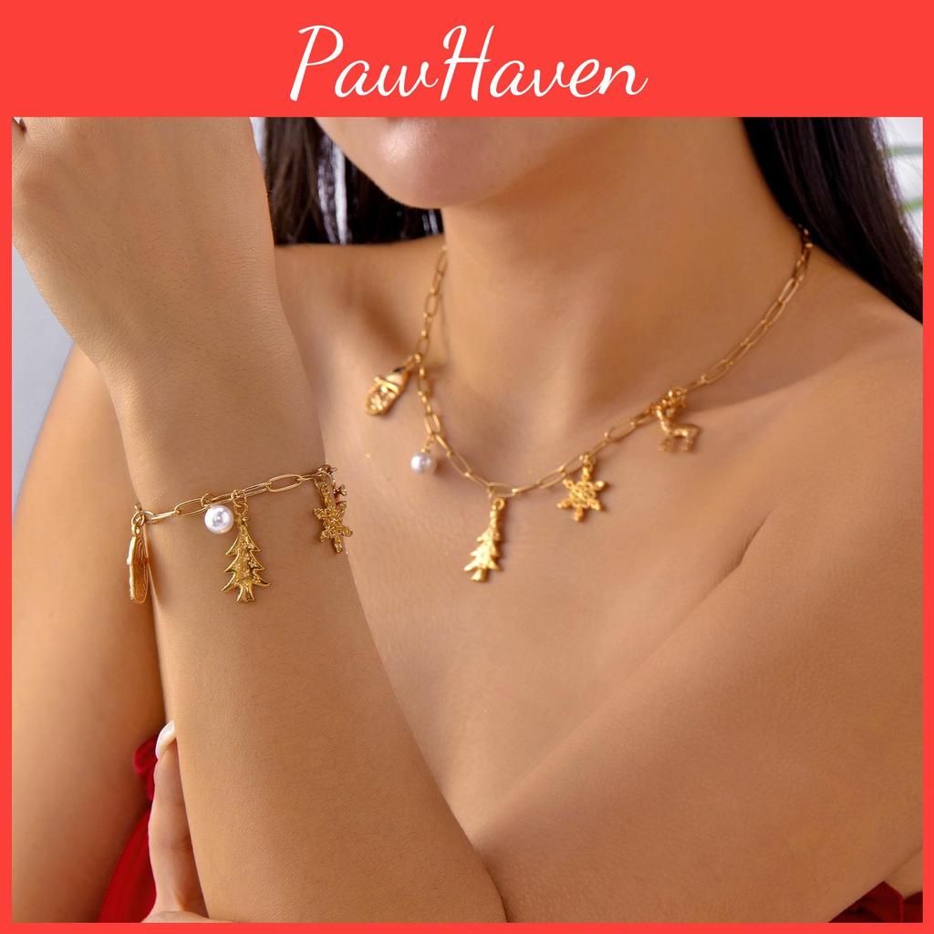 Ensemble de Bijoux de Noël Cerf Flocon de Neige avec Chaînes en Alliage pour Cadeau de Fêtes
