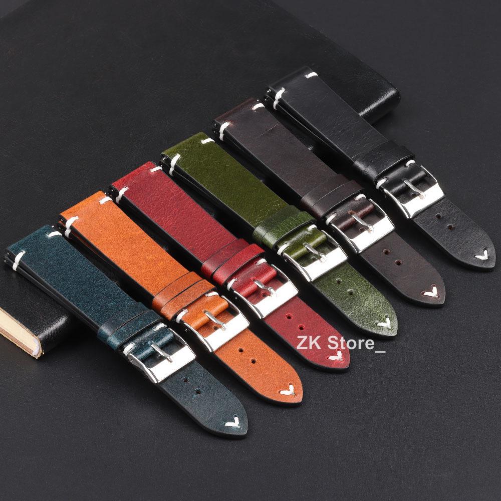 Retro Oil Wax Genuine Calfskin Watch Band Quick Release Handmade Stitching Leather Watch Strap 18mm 20mm 22mm Watch Accessories