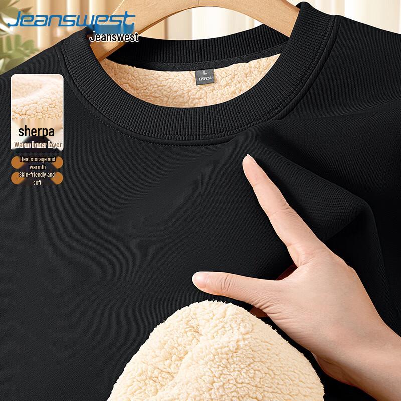 Jeanswest Men's Autumn/Winter Fleece Lined Round-Neck Sweatshirt