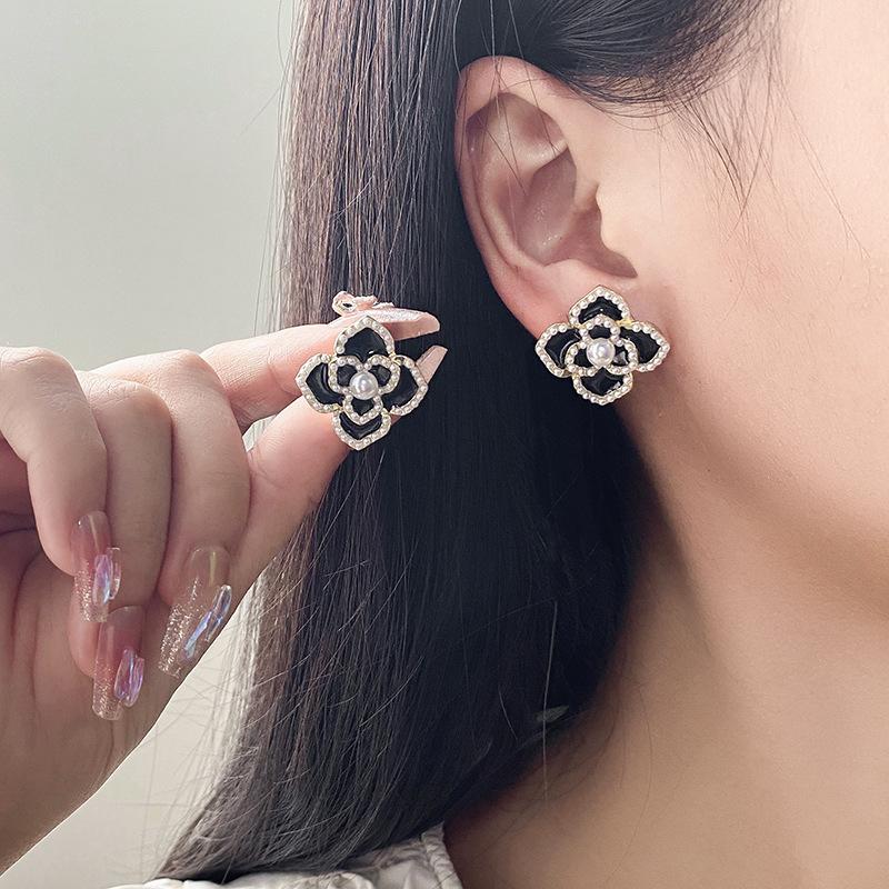 Boucles d'oreilles créatives à clous avec fleurs de camélia en émail perlé pour femmes, simples, mode, douces, personnalité, tempérament, bijoux minimalistes
