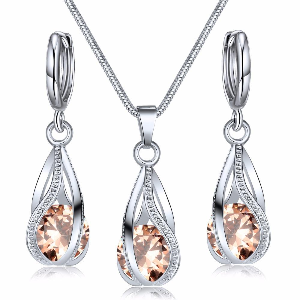 Ensemble Collier Boucles d'Oreilles 3 pièces Dames Luxe Léger Vent Alliage de Cuivre Pendentif Pierre Cristal Noir Section Clip d'Oreille Combinaison Bijoux