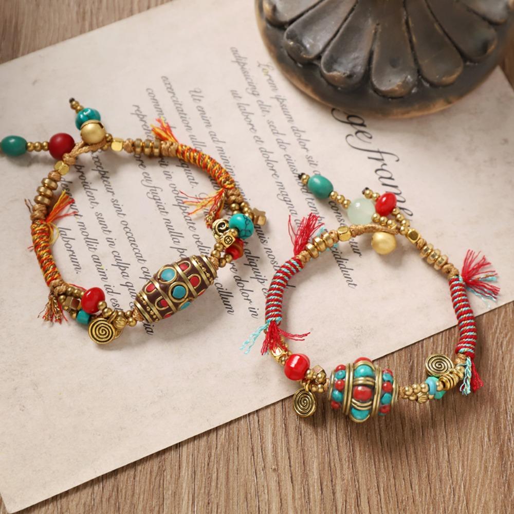 Adjustable Woven Hand Rope Copper Beads Braided Bracelet Ancient Style Ethnic Style Bracelet Girls