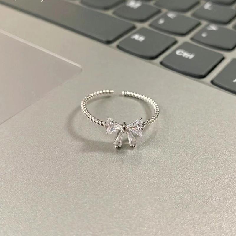 Bague ajustable en zircon brillant de style coréen pour femmes et filles, anneau romantique avec nœud papillon, bijoux simples à offrir