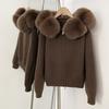 Cardigan Femme Manteau en Fourrure Naturelle Vrai Tricot en Fourrure Mongole Printemps Automne Veste en Fourrure Tricotée à Capuche