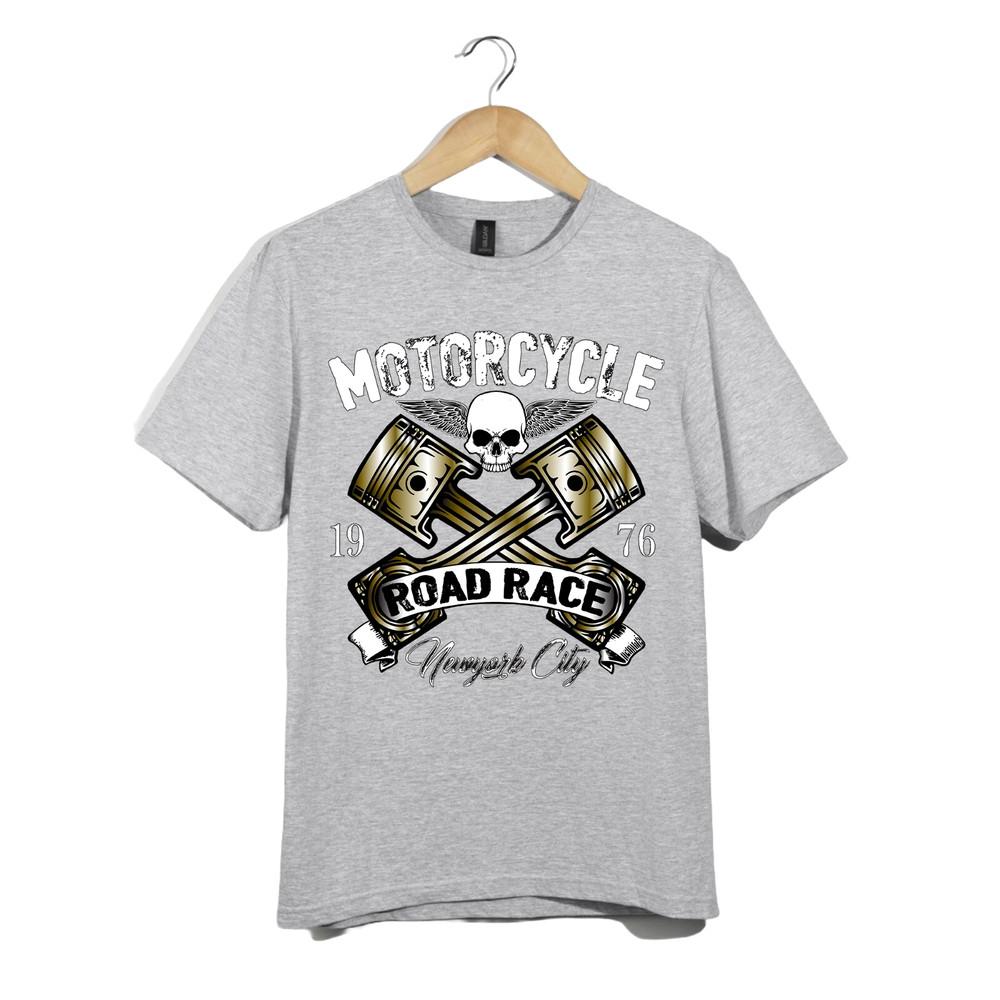 T-shirt Moto Crâne Course sur Route Unisexe Biker NYC Moteur à Piston Graphique