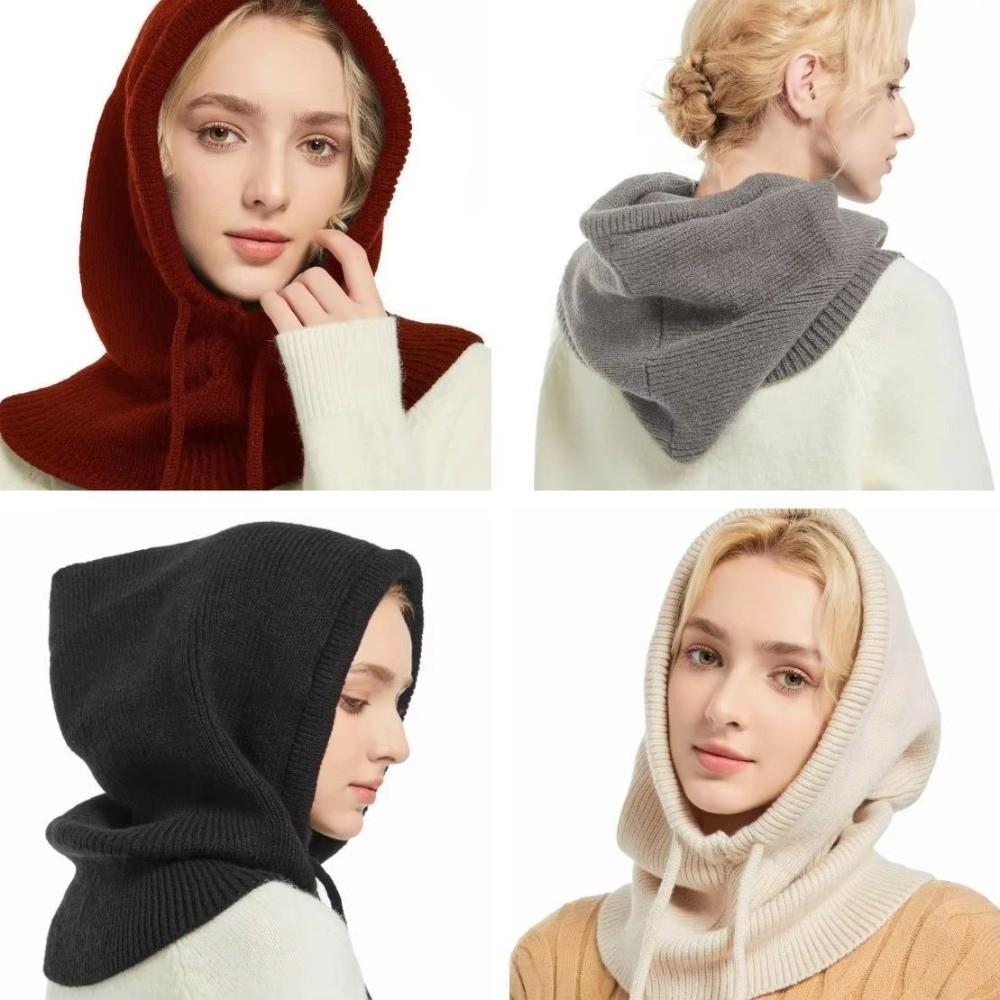Warm Insulation Winter Knitted Hooded Caps One-piece Neck Collar for Winter Outdoor Activities