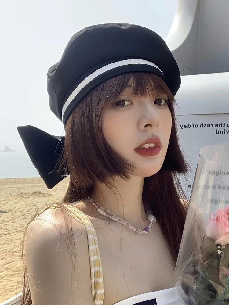 Japanese Sweet Cute Bow Beret Female Summer Sunshade Sailor Hat Student Retro College Style Painter Hat